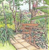 นอกจากนี้ยังสามารถปลูกไม้ประธาน เพื่อเพิ่มมิติให้ไม้พุ่ม หรือลดระดับ ความต่างกัน ของ ความสูง ระหว่าง ไม้ยืนต้น กับ ไม้พุ่ม ได้อีกด้วย