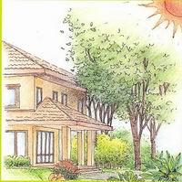 ให้ปลุกไม้ยืนต้นทางด้านทิศตะวันตก เพื่อช่วยบังแสดงแดดที่ร้อนแรงของช่วงบ่ายจะช่วยลดความร้อนในตัวบ้าน ประหยัดค่าไฟแอร์ พัดลมไปได้มาก