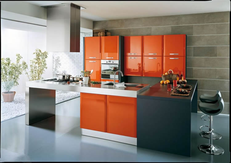 สีส้มในห้องครัวจะเติมคุณด้วยความเบิกบานใจและมองในแง่ดี ทำให้คุณสดชื่นและอบอุ่น เฉดสี สีเขียวเข้ม และสีแดงมีการเจริญตา นอกจากนี้ช่วย ลดวามตึงเครียดประสาทและเสียงความรู้สึกเป็นธรรมชาติทั้งหมด นอกจากนี้ภาพวาดในฤดูใบไม้ร่วงสีส้มแดงจูงใจที่จะผ่อนคลาย และกระตุ้นความอยากอาหารเพื่อสุขภาพในห้องครัว
